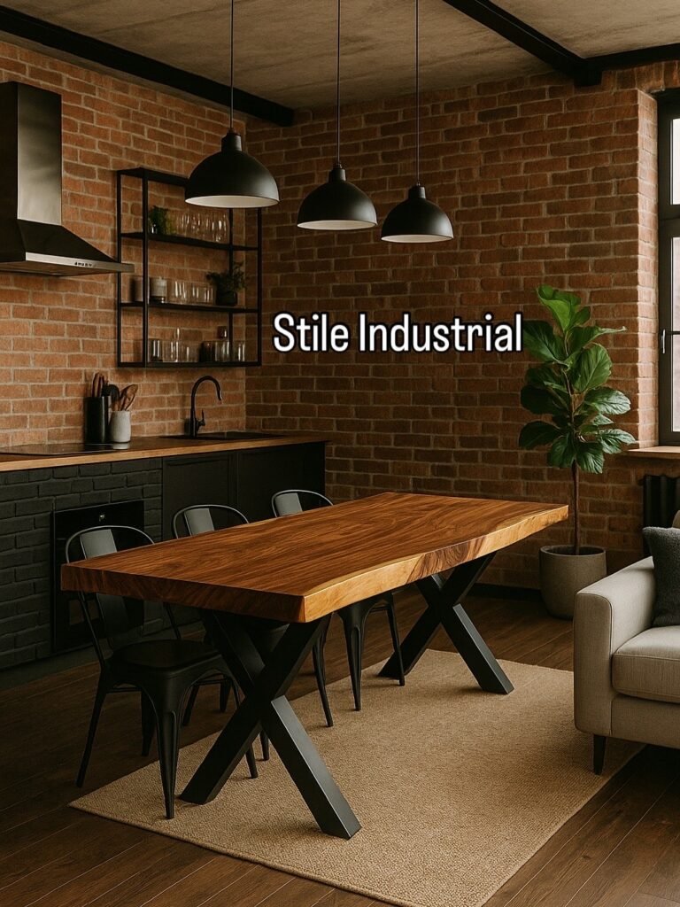 Mattoni a vista, tubature in metallo, tonalità scure e cemento: lo stile industriale è urbano e deciso. Il nostro tavolo in legno massello di acacia con bordo naturale e gambe in ferro si sposa perfettamente con questo mood, aggiungendo calore e un tocco organico. Ideale per loft metropolitani, open space o spazi commerciali di design.